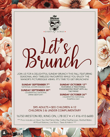 LET'S BRUNCH - Sept 28th Oct 12th & 26th - 12:00pm, 12:30pm & 1:00pm