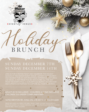 Holiday Brunch - December 7th and 14th - 11:30am, 12:00pm, 12:30pm