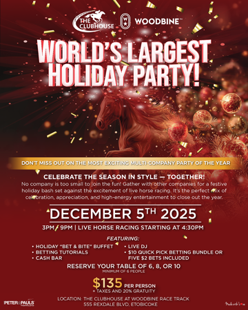 World's Largest Holiday Party - December 5th, 2025 at The Clubhouse at Woodbine Race Track - 3:00pm to 9:00pm